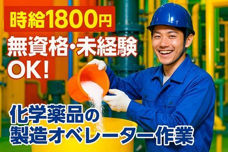 仕事内容 化学薬品の製造オペレーター作業 \資格がなくてもこの高時給スタート♪体を動かしてしっかり稼げる!/ 【仕事内容】 以下のいずれか、または複数の工程をお任せします。 ◎原料の投入・軽量・梱包 ┗ 機械に原料を投入し、計量&袋詰め→袋をミシンでしっかり閉じる! ◎液体薬品の撹拌・充填作業 ┗ 撹拌機に液体薬品を投入し、ドラム缶や一斗缶へ充填。 ※フォークリフト免許あれば尚良し! もちろん免許ない方も大歓迎です! 【この仕事のポイント】 ◎高時給1800円でしっかり稼げる! ⇒ 月収30万円以上も可能な高収入ワークです! ◎業績好調の為増員の募集! ⇒ 安定して働けるので安心!働きやすい雰囲気◎ ◎基本日勤でのお仕事! ⇒ 8:00~17:00生活リズムを崩さず働けます! ◎お風呂完備でリフレッシュ♪ ⇒ 仕事終わりにサッパリ!汗をかく作業でも快適に帰宅できます。 ◎土日祝休みでプライベート充実! ⇒ 家族との時間や趣味も大切にできる♪