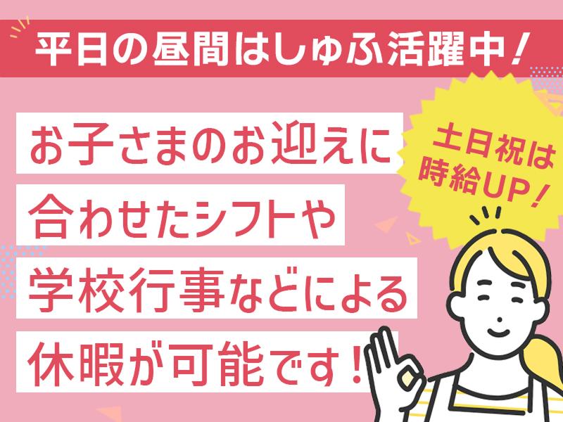アピールポイント: ✅日祝・お盆・年末年始は時給1,100円~ ✅未経験でも安心 最初は先輩スタッフが横について 丁寧にサポートします。 分からないことはすぐに聞ける気さくな環境です。 ✅ライフスタイルに合わせて働ける 「子どもが学校に行っている間だけ」 「授業がない土日だけ」 「扶養内で働きたい」など シフト融通もばっちり◎ 「子供が急に熱を出して…」 「学校のテスト期間は休みたい」など 急なお休みにも柔軟に調整します!