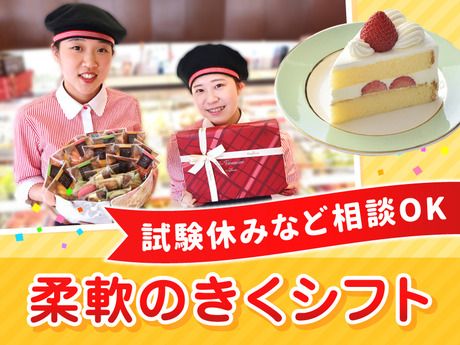 職場環境 【従業員構成】 \学生さん多数活躍中!/ 学校終わりに、空きコマに、サークルがない日に、学校が休みの日に… 勉強とバイトの両立ができる職場をお探しの方、歓迎!! 働きながら、同年代の新しい友達も作れちゃいます♪ 甘くて美味しいケーキも社割でお得にGET! ★店舗のスタッフの数は平均15名。 10代、20代、30代、40代以上と幅広い年代の方が 勤務している他、学生、フリーターの方、主婦(夫)の方まで 性別問わず様々な方が活躍されています! 明るく、和気あいあいとしたスイーツショップです! 社員・アルバイト関係なく協力し合える職場なので楽しく働けますよ! 【学生スタッフの声】 ○Aさん(20代学生) 「ケーキが好きでこのバイトを始めました! テスト期間中は休みをしっかり取って、無理なく学業と両立できています。 ここで身につけた接客スキルが、就活でもすごく役に立ちました。」 ○Bさん(10代学生) 「初めてのバイトで不安でしたが、 同年代の仲間のおかげで楽しく働けています。 みんなと一緒にお小遣い稼ぎ頑張ってます!」 【職場の雰囲気】 業務外交流多い 立ち仕事 アットホーム お客様との対話は多い 自分の都合に合わせやすい 知識、経験不要