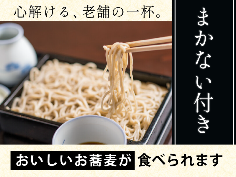 職場環境 これまでの社会経験や気配りが 活かせる職場です♪ 落ち着いた雰囲気の老舗そば屋。 スタッフ同士の仲も良く、 美味しいお蕎麦のまかない付きで 和気あいあいとしています◎