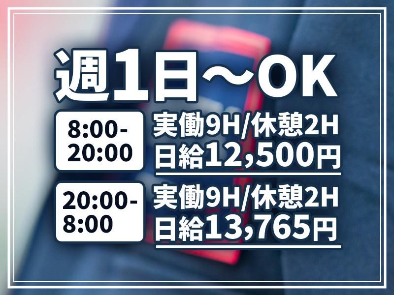 勤務時間詳細 実働時間:1日あたり9時間 〜 10時間30分 平均勤務日数:1ヶ月あたり18日 〜 20日 (日勤)9:00~21:00(実働9h/休憩2h) (夜勤)21:00~翌9:00(実働9h/休憩2h) ※週1日~勤務OK ※勤務日数・シフトにより勤務時間は大きく異なります ※フル勤務の場合、1日あたりの実働時間は9~10.5時間程度となります ※1か月単位の変形労働時間制 ■日勤のみ・夜勤のみ相談可 ■Wワーク・副業との両立も可能 事前に相談いただければ、 希望を考慮したシフト調整も可能です!