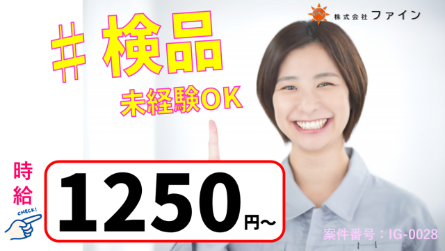 ■時給1250円■駅からの送迎バスありで通勤らくちん♪小さなゴム部品の検品作業!男女活躍中 ◆案件番号FI0070◆ お電話で案件番号をお伝えください♪ |ゴム部品の検品作業の 求人情報です| 重いものナシなので 女性が多数活躍中です! ファインで働く \ おすすめポイント / ◎社員登用の実績あり →長期で安心して働きたい方にピッタリ ◎うれしい週払い制度あり(規定あり) →貯蓄にまわして旅行の積み立てや 先に支払っておきたいお金など、いろいろご活用いただいてます ◎土日祝休み(会社カレンダーあり) ◎残業代はきっちり支給です! _______________ \ ファインが選ばれる3つの理由! / ① 最短スピードでお仕事スタート! → 「すぐに働きたい!」を全力サポート ② 職場見学も同行します! →事前に雰囲気をチェックできるので安心 ③ あなたにピッタリの職場を多数ご提案! →ご応募いただいた案件以外にも、 通勤距離・収入希望額・勤務時間 あなたの雰囲気などを 最大限に考慮して、ご提案します!