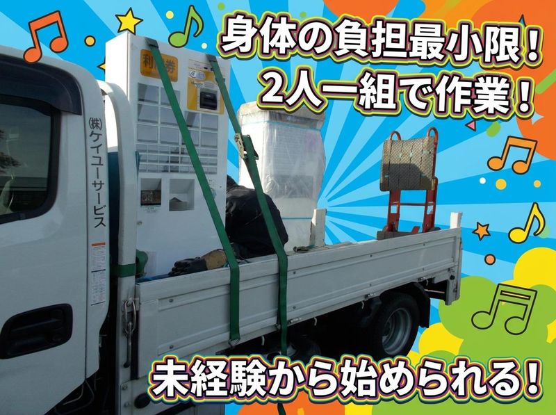 仕事内容 。。。。。。。。。。。。。 たばこ自販機・券売機の 設置と撤去、メンテナンス ゜゜゜゜゜゜゜゜゜゜゜゜゜ コンビニや駅で見かける 「タバコ自販機」や「券売機」の 設置・メンテナンスをお任せします。 2tトラック(ゲート付のオートマ車)を使用しますが、 重い機械は車両の昇降機(パワーゲート) で積み降ろし。 力任せの作業ではなく、コツを掴んで 機械を操る仕事です。 【具体的には】 ※2名1組での作業※ 券売機及びたばこ自販機などの 設置、撤去、メンテナンス業務。 車両は2tのゲート付きAT車です。 日々の指示書に従って、 関東圏内の現場をまわります。 【常にペアで安心】 一人きりになることはありません。 困ったときはすぐ隣に先輩がいるので、 未経験の方も一つひとつ作業を確認しながら 進められます。 独り立ち後も、お互いをサポートし合える環境です。 【安定した収入】 未経験でも月給30万円スタート。 賞与年2回に加え、日々の頑張りは昇給で しっかり還元します。 家族を支える世代も安心して 長く働ける環境を整えています。 ゜゜゜゜゜゜゜゜゜゜゜゜゜ <1日の流れ(例)> 08:00 出勤・朝礼。今日のルートを確認。 08:30 準備。自販機をゲート車で 積み込み(ボタン操作で楽々)。 09:30 現場到着(1日2~4件程度)。 相方と声を掛け合いながら設置。 12:00 お昼休憩。エリア近くの美味しいお店へ行くことも! 13:00 午後の設置・点検。 16:00 帰社。伝票整理や明日の準備。 17:00 退社。「お疲れ様でした!」 残業は少なめでプライベートも充実。 ゜゜゜゜゜゜゜゜゜゜゜゜゜ 「次はこれを支えて」 「ここにネジを止めて」 と指示が出るので、未経験の方も 迷うことはありません。 移動中の車内は、ちょっとした休憩時間。 世間話をしながらリラックスして 現場へ向かえます。 ゜゜゜゜゜゜゜゜゜゜゜゜゜ [雇用もとについて] 本求人の雇用元は株式会社ケイユーサービスとなります。 (本社:埼玉県さいたま市西区宮前町1050-3)