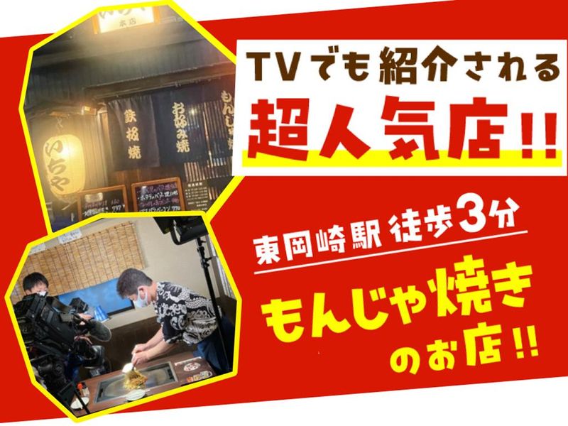仕事内容 下町の雰囲気漂うここはー。 【もんじゃ焼・鉄板焼 いちや本店】 “美味しいもんじゃ”と“人とのつながり” を大切にしているお店です。 【お仕事の内容】 ・お客様のご案内 ・料理・ドリンクの提供 ・ドリンク作成 など。 難しい作業は一切ないので 未経験からでも大丈夫ですよ。 最初は笑顔で「いらっしゃいませ!」 と挨拶ができたら◎ できることからお願いしますのでご安心を。 いちや本店で働くポイント! ✅ 未経験OK!鉄ベラの使い方から教えます! ✅ まかない無料! ✅ 髪型・髪色・ピアス自由(清潔感があればOK) ✅ 学生・フリーター歓迎 ✅ チームワーク抜群のアットホームな職場 常連さんとの何気ない会話や、 焼きながら生まれる笑顔が、この仕事の醍醐味。 “あたたかい関係”を感じられる場所です! \先輩インタビュー!/ 「店長もスタッフも全力で楽しんでる! だから仕事もプライベートもどっちも充実してます!」 「未経験から始めたけど、 みんな仲良くて、毎日出勤が楽しみです♪」 インスタでもお店の雰囲気が見られます! @ichiyahonten