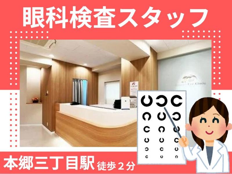 仕事内容 ⭐ 40代主婦活躍中 ⭐  ̄ ̄ ̄ ̄ ̄ ̄ ̄ ̄ ̄ ̄ ̄ ̄ ̄ ̄ ̄ ̄ ⏩未経験スタート応援! ⏩経験者歓迎 ⏩近場で!地元で!安定の正社員♪ ⏩完全週休2日制(水・日・祝) ⏩賞与あり★頑張りをしっかり還元! ⏩「本郷三丁目駅」徒歩2分の好立地! ──────────﹒☆﹒﹒── ⭐ 仕事内容 ⭐  ̄ ̄ ̄ ̄ ̄ ̄ ̄ ̄ ̄ 眼科検査補助員としての 業務全般をお任せします! ✅眼科一般検査 ✅視力検査や視野検査 ✅コンタクトレンズ処方 ✅検査に伴う医療機器の操作 ✅診察アシスタント ✅受付補助 ✅医療事務 など ──────────﹒☆﹒﹒── ✨眼科検査経験者の方優遇✨  ̄ ̄ ̄ ̄ ̄ ̄ ̄ ̄ ̄ ̄ ̄ ̄ ̄ ̄ ̄ ̄ 眼科などで検査員や診察補助などの 経験をお持ちの方、経験を活かして 即戦力としてスグに活躍できます! 眼科検査員(OMA、コメディカル)、 視能訓練士(ORT)の資格を お持ちの方も歓迎! ⭐ 文京眼科医院 ⭐  ̄ ̄ ̄ ̄ ̄ ̄ ̄ ̄ ̄ ̄ ̄ 2022年3月に移転し、 リニューアルオープン✨ 開院より50年の歴史あるクリニックです。 現在も綺麗な内装を保っていますので 気持ちよく、お仕事ができますよ♪ 家庭と両立しながら働く 地元の主婦さんが多数在籍しています! ──────────﹒☆﹒﹒──