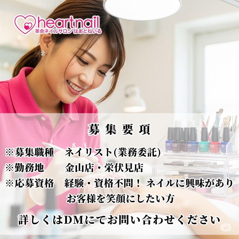 選考プロセス 応募後、原則3営業日以内にご連絡いたします 【面接地・登録地】 はあとねいる金山店 所在地:愛知県名古屋市中区金山2-4-22ワールドフラッグ金山2F 担当者:中村英機 電話番号:09014797969 メールアドレス:heartnailkanayama@gmail.com はあとねいる栄伏見店 所在地:愛知県名古屋市中区栄2-1-12ダイヤパレス伏見2F 担当者:中村英機 電話番号:09014797969 メールアドレス:heartnailkanayama@gmail.com 株式会社SPiCa 本社 所在地:愛知県碧南市港本町1-1 担当者:中村英機 電話番号:09014797969 メールアドレス:heartnailkanayama@gmail.com
