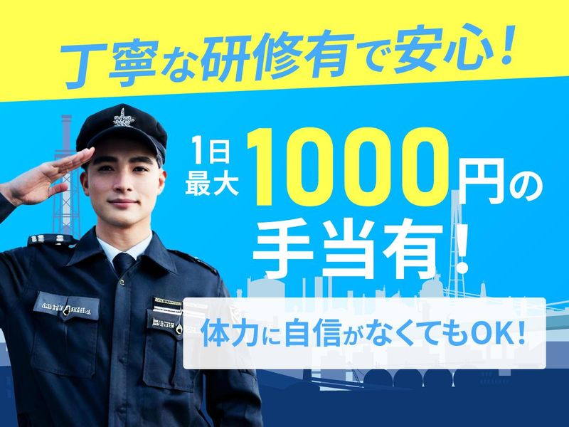 仕事内容 ○●○●○━━━━━━━━━━━━━━━ セカンドキャリアを応援! 40代~60代のミドル・シニア世代が 多数活躍しています! 丁寧な研修でイチから学べるから 警備業未経験の方も安心です◎ <日給10400円~/1日最大1000円手当あり> ━━━━━━━━━━━━━━━○●○●○ 日本精線の枚方工場で 夜勤の警備スタッフを募集します! 体力が必要な業務はなく、 休憩時間もたっぷり。 未経験の方も大歓迎です♪♪ ■■主な業務■■ <出入り管理> 施設に出入りされる業者さんを 該当の部署まで案内します。 その都度指示があるのでカンタン◎ 大きな移動もありません。 <交通誘導> 正門前の車や通行人を誘導します。 工場で勤務される方が出勤・退勤する タイミングのみなので、 1日2回・交替制で行います。 <敷地内の巡回> 夜に1回、朝方に1回、2名体制で行います。 自転車で移動するのでラクラクです♪ <正門の開け閉め> 工場の安心・安全を守る大切な業務です。 こちらも難しい作業はありません◎ ■■丁寧な研修あり■■ 勤務スタートの前に、 3日間の座学研修を行います。 基礎からじっくりレクチャー。 もちろんお給料もお支払いします◎ 警備業がはじめての方も 自信を持って働ける体制をご用意しました。 実際に、未経験からスタートした 40代・50代・60代のスタッフが 多数活躍しています♪ ■■嬉しい手当も充実■■ 勤務交替時の立哨警備には、 日給とは別で手当を支給。 1日最大1000円です◎ 他にも嬉しい制度が盛りだくさんです♪ ・資格手当あり ・交通費支給(月2万円まで) ・自転車通勤、バイク通勤OK