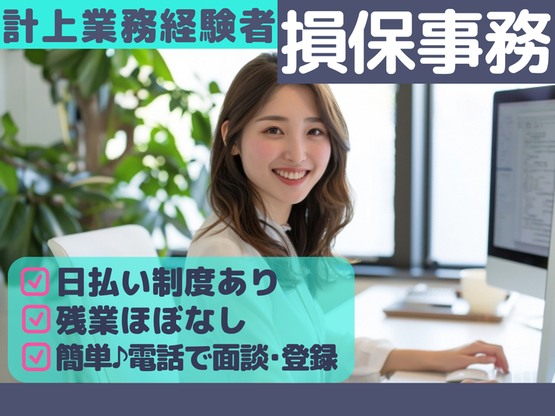 求めている人材 ⭐どちらかの経験がある方⭐ ※経験年数・雇用形態は問いません。 ⏩損保事務(計上業務)の経験がある方 ⏩金融業界内の一般事務の経験がある方 ⏩ブランクある方も大歓迎!! ⏩OJT完備で安心◎ -✄ ⭐経験者・有資格者歓迎 ⭐主婦・主夫歓迎 ⭐ブランクOK ⭐フリーター歓迎 ⭐学歴不問 ⭐ミドル活躍中 ⭐履歴書不要 ⭐来社不要 ⭐WEB面談OK ⭐電話登録OK ⭐資格不要 ⭐スキル不要 ⭐学歴不問 ⭐初めての派遣OK ⭐服装・髪型自由 ⭐残業少なめ ⭐転勤なし -✄ 《こんな経験は活かせます♬》 一般事務、営業事務、データ入力、 コールセンター事務、受付事務、 金融事務、保険事務、経理補助、 庶務、アシスタント事務、総務、 バックオフィス業務、書類作成、 問い合わせ対応、コールセンター、 オンライン事務代行など 《異業種からの転職もOK♬》 在宅/財団法人/事務/受付/販売/カフェスタッフ スイーツ販売/ホテルフロント/化粧品販売/など 前職はさまざまな先輩が活躍中♪