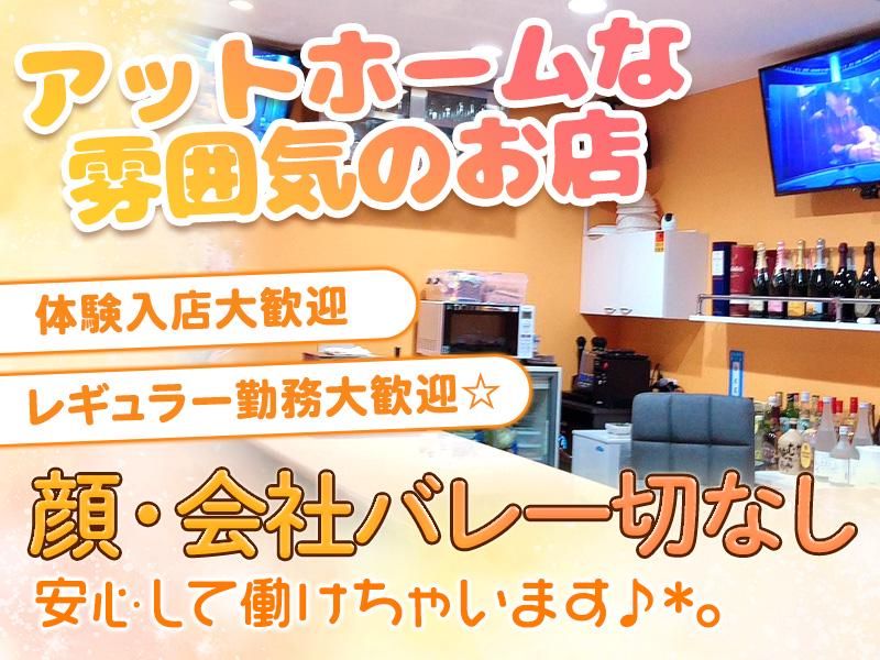仕事内容 落ち着いたアットホームな雰囲気のお店です♪ 30代が多数活躍中! 皆さん同世代だから、すぐに馴染んで楽しく働けますよ☆ *店内の雰囲気や仕事の流れ *美味しいお酒の作り方 *接客のコツ などなど! わからないことは気軽に相談して下さいね! お話が好きな方、大歓迎です♪ 経験者の方は優遇します! ママのお手伝い感覚で、 お客様に簡単なドリンクを提供したり、 楽しくお話ししながら過ごして下さい♪ ◆◆お仕事内容◆◆ *お客様を笑顔でお出迎え *お席へのご案内 *水割りなどの簡単なドリンク作り *お話し相手になる *カラオケの曲入れ など - .★ アットホームな雰囲気で居心地が良い ★. 日中の仕事に合わせてシフト調整ができるので、 自分のライフスタイルに合わせて働けます♪ 20~30代のスタッフが多く活躍中! みんな同世代で助け合って働いています☆ ★ノルマ・罰金・待機カット・指名等一切なし★  ̄ ̄ ̄ ̄ ̄ ̄ ̄ ̄ ̄ ̄ ̄ ̄ ̄ ̄ ̄ ̄ ̄ ̄ ̄ ̄ みんながストレスフリーで働けるよう、 イヤなルールは排除しています! 連絡先の交換も強制していないので、 経験に関わらず安心して働けますよ☆彡 ★各種手当や昇給あり★  ̄ ̄ ̄ ̄ ̄ ̄ ̄ ̄ ̄ ̄ 頑張りや努力は昇給や手当でしっかり還元! 短時間でしっかり稼げるので、 Wワークでお小遣い稼ぎにも最適です♪ ★安心&安全に働ける環境★  ̄ ̄ ̄ ̄ ̄ ̄ ̄ ̄ ̄ ̄ 優しい常連のお客様ばかり♪ 具体的には… *ノルマ *遅刻などのペナルティ(罰金) *待機中の時給カット *客引き行為 *ビラ配り *強制出勤 *同伴・アフターの強制 *連絡先交換の強制 これらは一切ありません(*'▽')v 自然体で楽しみながらお仕事ができる環境です☆彡