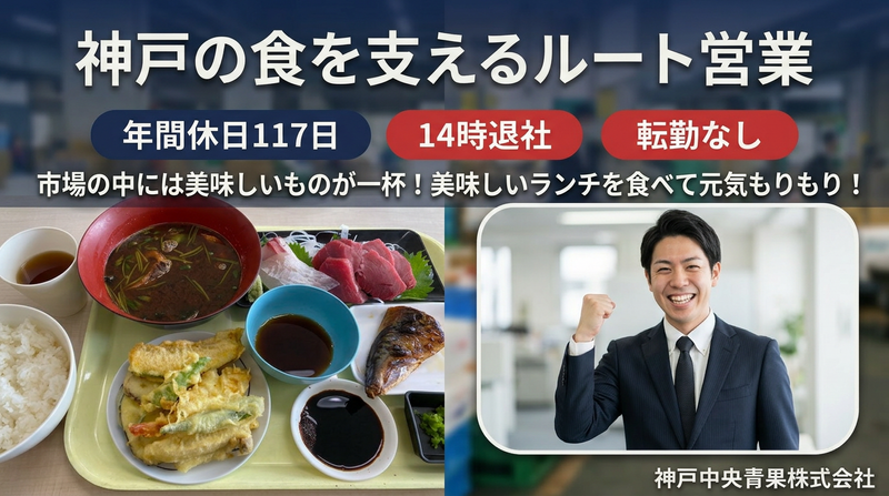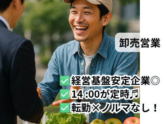 仕事内容 \仕入先となる生産者の元へ定期的に足を運びます/ ◇発注対応や各種調整 ◇仕入先との交渉、価格調整 ◇委託を受け、野菜や果物を販売 ◇産地を訪問し情報収集や出荷以来 地域の食卓を支える、社会的意義の高い仕事です。 ▼簡単な募集内容▼ 【雇用形態】正社員 【給与】300万円~400万円 【勤務時間】6時00分〜14時00分 【勤務地】兵庫県神戸市東灘区深江浜町1-1 神戸市中央卸売市場 東部市場内 【募集要件】未経験歓迎♬学歴不問 ★この求人のアピールポイント★ ◪安定した経営基盤と成長性◎ ◪14:00が定時♬午後の時間も充実 ◪転勤×ノルマ×目標なし! ◪人と明るく会話できる人なら活躍可能☆ ==================== 【どんな会社?】 当社は昭和44年に設立され、青果物の流通を通じて地域の食文化と産業を支えてまいりました。 神戸市東部中央卸売市場に拠点を構え、青果物の卸売業務を中心に展開。徹底した品質管理により安定した供給体制を確立しています。 私たちは、産地と消費地をつなぐ“流通の要”として、地域経済と食の安全を支えるリーディングカンパニーであり続けます。 また、関西の中央卸売市場では珍しく、野菜や果実の加工事業にも積極的に取り組んでおり、付加価値の高い商品開発にもチャレンジしています。 【お仕事内容】 仕入先となる生産者の元へ定期的に足を運んでいただきます。 具体的には ◇発注対応や各種調整 ◇仕入先との交渉、価格調整 ◇委託を受け、野菜や果物を販売 ◇産地を訪問し情報収集や出荷以来 などをお任せします。 生産者との関係性を深めるために生産地への出張があり、地方に行く機会があります。いろいろな所に行けるので旅行好きな方にはピッタリのお仕事です♬ 《入社後の流れ》 最初は先輩社員と同行しながら商品や取引先の知識を習得していただきます。業務に慣れた段階で徐々に担当業務を引き継ぎ、最終的には一人で営業活動を行っていただきます。 【会社の魅力】 ◪安定した経営基盤と成長性◎ ◪14:00が定時♬午後の時間も充実 ◪転勤×ノルマ×目標なし! ◪人と明るく会話できる人なら活躍可能☆ 当社の働き方は、週休2日制・日祝休みで年間休日約120日! 残業少なめ、転勤なしと、かなり働きやすい環境が整っています。 業務内容などに関しては、面接の中でしっかりとご説明させていただきますので、当社でのお仕事にご興味を持っていただいた方のご応募をお待ちしています。