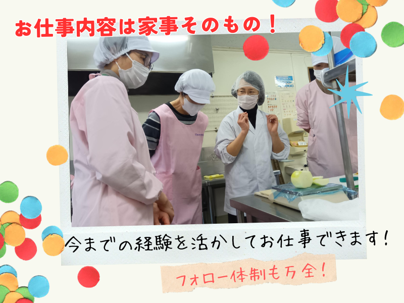 仕事内容: 社員寮で、住み込みでのお仕事です。家賃・光熱費は当社負担だから固定費が抑えられます。朝夕の食事作りがメインのお仕事なので、お料理が好きな方大歓迎です!寮生が安心・快適に過ごせるよう食事や清掃面等の住環境を一緒に支えてくれる方を求めています。50代・60代の女性が活躍しています。 【仕事内容】 東北電力・東北電力企業グループ社員寮の管理人業務 基本的に行っていただくのは家庭での家事と同じようなこと。 ・食材の買い出し ・食事の調理・提供 ・食後の後片付け ・共有スペース清掃 その他の付随業務をお願いします! 管理業務や住込みのお仕事が初めての方でも先輩スタッフが丁寧にお教えします。 未経験の方でも安心してご応募ください♪