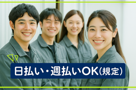 仕事内容 ★--+。--+。--+。--+。--★ 20代・30代男性活躍中! 土日休み!プライベートも充実♪ ★--+。--+。--+。--+。--★ ✨難しい作業は一切ナシ! ※一部、重量物あり! ✨経験・学歴は不要!! ✨事前の職場見学で雰囲気を確認可能! ✨車・バイク通勤OK ✨休憩室・更衣室完備 ✨制服貸与有り ◆:。*:。*:。**。:*。:*。:◆ < 未経験OK!倉庫内作業 > ✅配管部品(フランジなど)を 取り扱う倉庫 ✅指示書を見て倉庫内から在庫確認し、 段ボールまたはパレットに格納する作業 丁寧な研修で安心スタート!! ◆:。*:。*:。**。:*。:*。:◆ < 定着率バツグンの職場環境♪ > ⭐月収26万円以上可能! (時給1300円×1日8h+残業1h)×月22日 ⭐土日休み&夏季・年末年始休暇あり◎ プライベートの予定も立てやすい♪ ⭐職場見学OK◎ ⭐24hスマホやPCで申請OK! 日払い・週払い対応可能◎ ●===●〇●======●〇●===● 大手派遣会社ジャパン・リリーフで まずはお気軽に「登録ダケ」もOK♪ / スピード登録★最短30分で完了◎ \ Q.「スグに働く予定がないけど、 登録だけしても大丈夫なの??」 A.大丈夫です!! 登録をしておけば、「働きたい」と 思った時に即お仕事探しが可能です! / 即面接OK! \ ■電話応募・Web・出張面談も実施中◎ ●===●〇●======●〇●===●