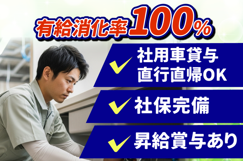 有給消化率100%/社用車貸与・直行直帰OK/月収25万円~