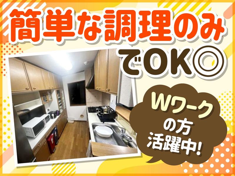 仕事内容 週1日~ok!Wワークもok! あなたの個性を活かして働ける* 入居者様と楽しい時間を過ごせるように サポートや支援をお願いします* 【具体的には】 戸建て住宅を活用したグループホームにて 入居者様のサポートを行うお仕事です。 現在は、4名が入居しています。 30代前半の方から40代・50代の男性が いらっしゃいます。 ・入居者様の相談支援 ・ご飯の準備(炊飯、温める、盛り付けなど) ・戸締りや火の確認 ・部屋のお掃除 ・入居者様の入浴確認 ・ワード操作など簡単なPC入力作業 など 【未経験の方も大歓迎!】 まず入社初日には、 簡単な調理、洗濯の仕方、 お風呂の入れ方など、 家事業務全般の手順をお伝えします。 ”できることから少しずつ”でOKです! 【人と話すことが好きな方にオススメ】 主に入居者様の相談相手をしてもらいます。 「最近、夜眠れなくて…」 「仕事でちょっと嫌なことがあって…」 「将来的に不安なことがあって…」 など、入居者様が相談をしてくれるタイミングで、 「ちょっとお話ししましょうか」と 声をかけていただきます。 経験や資格はなくても大丈夫。 思いやりを持って行動できる方を歓迎します。 【今働いているスタッフについて】 50代~70代の男女が活躍中! 週1・2日ほどWワークとして勤務しています。 【うちならではのアピールポイント】 理学療法士、作業療法士の社員がいるので スタッフさん、利用者さん含めて 健康相談に乗ってもらえます!(笑) - 電話での応募や問い合わせだけも大歓迎! ⇒【TEL:090-4764-1945】まで お気軽にお電話ください -