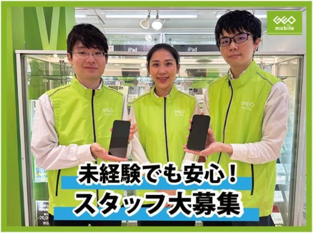 仕事情報 ● 仕事内容 お客様に最適な一台を提案するスマホの専門アドバイザー。取り扱いはスマホだけでなくゲームまで!店頭での接客を中心に販売・店内清掃や商品陳列をお願いします。買取査定も行いますが、研修で基礎から学べるのでご安心を!力仕事は少なく、お客様との会話を楽しみながら専門スキルを磨けるお仕事です。 明確な昇給制度 あなたの頑張りを正当に評価!半年に1度のスキル面談で、できる事が増えれば時給も着実にアップ!「メディアスタッフ」「モバイルスタッフ」など明確な等級制度で目標を持って働けます。着実にスキルと時給を上げていきたいフリーターの方にピッタリの環境です。 "自分らしく"働ける環境 力仕事はほとんどなく、体力に自信がない方も安心!髪色・ネイルも規定内でオシャレを楽しめます。2週間毎のシフト提出でプライベートとの両立もOK。学校や家庭の予定にも柔軟に対応できるので、長期で続けやすい環境です! こんな方を歓迎します! 専門知識を身につけ、腰を据えて長く働きたいフリーターさんを大歓迎!スマホやゲームが好き、人と話すのが好きなら未経験でも大丈夫!専門スキルは時間をかけてじっくり習得できます。長期で活躍してくれる方をお待ちしています! 企業情報 ゲオグループが運営するゲオモバイルは全国に展開するモバイル機器専門ショップです。中古スマホやタブレット等の販売・買取、格安SIMの販売などを行っています。
