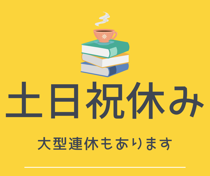 休日休暇 完全週休2日制 ・土曜日 ・日曜日 ・祝日 ・GW ・夏季休暇 ・年末年始 ・有給休暇