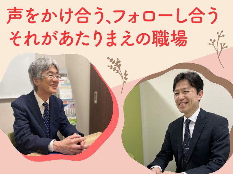 職場環境 仕事中に困ったり、迷ったりしてると すぐに気が付いて声をかける――― それがあたりまえの職場風土。 知識不要、業界未経験でもOK! 人の役に立ちたい、 サポート役が得意、 そんな方が活躍できます♪