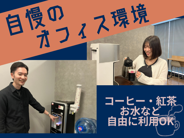 【保険制度】 雇用保険、労災保険、健康保険、厚生年金 待遇・福利厚生 【福利厚生】 ・交通費規定支給(当社規定) ・国内外旅行補助金制度 海外:年1回3万円まで、国内:年5回5万円まで ・非喫煙者手当 (非喫煙者に月3000円支給) ・アニバーサリー祝い金 (年1度、有給休暇とあわせて1万円支給) ・スポーツ推進手当 ・近隣居住者住宅手当(当社規定) ・ウォーターサーバー・コーヒー・紅茶など、 自由に利用OK