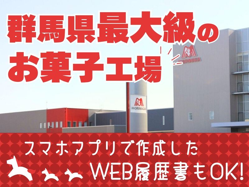 仕事内容 / 高崎森永で長期安定**・。 ⌒⌒⌒⌒ 社員登用あり!福利厚生も充実◎ 女性活躍中の職場です⭐ \ 2026年新スタート! 勤務開始日はお気軽にご相談ください** “あのお菓子を自分の手で作れる” という誇りを感じられる仕事です。 群馬で長く働きたい方、ぜひ一緒に “森永ブランド”を支えていきましょう! 【オススメしたいポイント5選】 (1)製菓工場として会社規模は群馬最大級!  ̄ ̄ ̄ ̄ ̄ ̄ ̄ ̄ ̄ ̄ ̄ ̄ ̄ ̄ ̄ ̄ ̄ ̄ ̄ (2)20~30代の若手社員が多数活躍中!  ̄ ̄ ̄ ̄ ̄ ̄ ̄ ̄ ̄ ̄ ̄ ̄ ̄ ̄ ̄ ̄ ̄ ̄ ̄ (3)長期休暇は9~10連休の実績あり**  ̄ ̄ ̄ ̄ ̄ ̄ ̄ ̄ ̄ ̄ ̄ ̄ ̄ ̄ ̄ ̄ ̄ ̄ ̄ (4)嬉しい日替わりの社員食堂を完備!  ̄ ̄ ̄ ̄ ̄ ̄ ̄ ̄ ̄ ̄ ̄ ̄ ̄ ̄ ̄ ̄ ̄ ̄ ̄ (5)作るお菓子は超有名!やりがいも*  ̄ ̄ ̄ ̄ ̄ ̄ ̄ ̄ ̄ ̄ ̄ ̄ ̄ ̄ ̄ ̄ ̄ ̄ ̄ . //////////////////////////// キャンディ、チョコレート、 ビスケット、アイスクリームなどの 森永製菓の製造業務をお任せします! //////////////////////////// . <具体的な仕事の流れ> 〇仕込み・成型・包装の それぞれの工程を担当します! 〇原材料の取り扱いや 機械オペレーター、品質チェック、 商品のケース詰めの作業もあります! 〇食品製造となりますので 冷暖房が保たれた場所での 勤務となります! . \ 有名な、あのお菓子を作ります / ハイチュウ ビスケット カレドショコラ ダース 板チョコアイス チョコモナカジャンボ マリー ムーンライト チョイス などのスーパーやコンビニでも よく見かける森永のお菓子を作ります! 目に見えて製品化されるから やりがいも感じれます! . \ 入社後、安心の研修制度 / 勤務開始後、各グループに分かれて 研修をしながら業務を行っていきます。 「製造業」や「工場」などで 勤務の経験がない方でも 働きやすい職場です! . 当社では各ラインにより、 グループ・チームで工程を行っております! それぞれにライン長が配置して 先輩社員が新人さんの フォローや教育をしています** 休憩中は年齢の関係なく 休憩所のお菓子を食べながら コミュニケーションを取っています!
