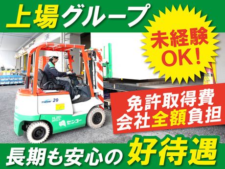 仕事内容 【未経験者もしっかりサポート】 ==================== 事業拡大につき新たなメンバーを募集します ==================== 経験不問・資格不問・年齢不問! まずは、お気軽にご応募ください! ◆地域密着で暮らしに不可欠な物流で安定 ◆免許取得にかかる費用は会社が全額負担 (3年間勤務が条件) ◆定年時には退職金あり!腰をすえて働ける ◆交通費規定内支給 ◆車・バイク通勤可(ガソリン代規定内支給) ※ガソリン代規定:距離×180円程度/12km走行見込み =================== フォークリフトの免許がないけど大丈夫? =================== 資格取得支援もあり、 運転技術も教えるので安心です! ============== プライム市場企業の安定基盤! ============== 当社は流通情報事業を展開する センコーグループ。 その100%出資会社として茨城・群馬・栃木に センターを展開しています。 地域密着で暮らしに不可欠な物流を担って おり、このご時勢でも業績は絶好調! プライム市場企業の安定感に加えて需要の なくならない物流事業は腰をすえて働くのに 丁度いい環境です! 入社後に会社負担で免許取得⇒定年時には 退職金も支給されるため、入社時から 最後まで、生涯安心して不安なく働けます。 ================== 免許取得にかかる費用は会社が全額負担 ================== 意外と簡単、4日の外部講習で免許が 取れちゃう!主にフォークリフトでの作業を お任せしますが、運転するための資格は、 入社後に取得できるため 【未経験】も【無資格】もOK!(3年勤務が条件) 何歳からでも活躍できるお仕事です。 ハードさもないため、まじめに仕事に取り 組める方であれば、どんな方でも必ず成長できます。 ============ 社員の“働く安心”を提供 ============ 未経験の人には、丁寧なサポートを。 長く働いてくれる人には、経験に応じた報酬を。 まじめに頑張る人が損をしないように。 そんな働きやすさを大切にしています。 【お任せする業務内容】 ◆未経験の方も大歓迎! 倉庫内・工場内での入出庫作業・ フォークリフト作業をお任せします。 その他、パート社員への指示出し、 労務関連などキャリアステップに応じて 管理業務にも携わります。 ~作業の流れ~ ▼トラックからの荷下ろし ▼検品・数量チェック ▼製品を倉庫内へ搬入 ▼ピッキング作業 ▼出荷に伴うトラックへ積み込み 業務は全て日本語なので日本語堪能な方