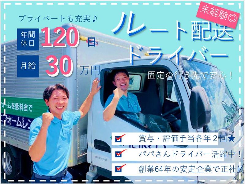 仕事内容 \寮完備!Iターン歓迎!配送スタッフ募集!/ 【在籍者の7割が未経験!女性ドライバーも活躍中!】 昼過ぎに帰れて、体力的にもムリのない配送ドライバー 病院などで使用される白衣・ズボンなどのユニフォーム類を配送・回収するお仕事です。 軽作業で重い荷物がなく、女性でも無理なく働けます! 近距離・固定ルート配送のため、昼過ぎには業務終了。 家族や自分の時間を大切にしながら、安定して働けます。 【未経験でも大丈夫!】 ・在籍ドライバーの約7割が業界未経験スタート! ・準中型免許取得支援制度があるので安心! ・普通免許(AT限定可)で運転できる2t車あり 「ドライバーは初めて」という方でも、無理なく始められる環境です。 具体的な仕事内容 ATトラック(2t)を運転し、ユニフォームや制服等のクリーニングしたものを、お客様にお届けしたり、使用済みのユニフォームを回収します。 ・普通免許で運転できる2t車での運転も可能 ・1日の走行距離は100km未満 ・夕方には帰社できるスケジュール →昼過ぎに帰れるから、こんなこともできる! ・子どものお迎えにも余裕で間に合う ・平日しか行けない病院や役所の手続きもスムーズ ・美容院や用事を仕事終わりに済ませられる ・家に早く帰って、夕方以降は家族時間 ● 寮完備!遠方からの応募も歓迎 寮を完備しているため、 住まいの心配なく新しいスタートが可能。 地元以外からの応募も歓迎します。 ●長距離運転や深夜配送はありません! 配送物は衣類が中心で、重さ・かさばりも少なめ。 女性やドライバー未経験の方でも無理なく始められます。 ●お客様対応について 訪問先は決まったホテル・施設のみ。 対応は納品・回収時の受け渡しや挨拶が中心で、 営業行為や長い接客はありません。 1日の流れ 午前 近隣の各施設へリネンをお届け 午後 翌日の荷物準備・積み込み、数量チェックなど → 昼過ぎには業務終了・帰宅! ※休憩は配達の合間に、自分のタイミングで取得できます。 POINT ★女性も活躍中!体力に自信なくてもOK! 現在、女性ドライバーも在籍しており、 性別に関係なく活躍できる職場です。 配送物はシーツ・タオル・ユニフォームなどの衣類が中心。 台車を使用して運ぶため、力仕事ばかりではありません。 実際に、女性スタッフも無理なく業務を行っています。 ★ 普通免許でOK+免許取得支援 普通免許(AT限定可)で入社可能。 免許取得支援制度を使って、中型免許へステップアップできます。 ★ 昼過ぎに帰れる!近距離配送 ・訪問先は近隣エリアのみ ・固定ルート配送 ・長距離・夜間運転なし 仕事と家庭を両立しやすい働き方です。 ★ 年間休日120日/完全週休2日制 日曜は固定休+他1日の完全週休2日制。 土日連休の取得も可能なので、家族との予定も立てやすい環境です。 仕事と家庭・私生活を両立しやすい働き方ができます。 ★ 安心して長く働ける評価制度!年間最大60万円支給! 半期に一度の評価制度を導入し、 日々の仕事ぶりをきちんと見える形で評価しています。 評価は、売上やノルマではなく、 ・協調性や主体性など上司からの評価 ・クレーム数、勤怠など数値評価 ・担当のお客様からのアンケート評価 ・お客様への改善提案の実績評価 ・ドライブレコーダーでの運転評価 ・簡単な筆記試験 などなど、未経験の方でも取り組みやすい項目が中心です。 上記を評価して、評価上位者には 昇給・賞与の他に年間60万円を支給! 日々コツコツ取り組む姿勢が、安定収入と将来の安心につながります。