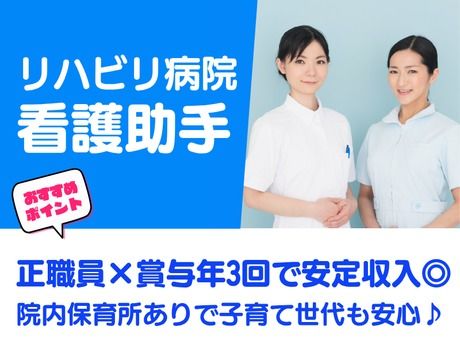 <★賞与年3回♪無資格OK◎>リハビリ病院での看護助手☆食事・入浴などのサポート業務♪保育所完備!