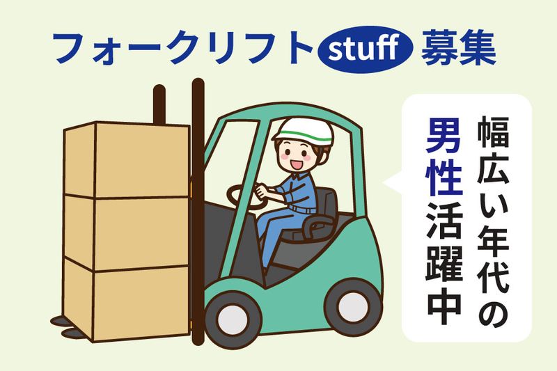 仕事の内容 野田市エリアの食品工場にて、 フォークリフトを使って生産のお仕事をしていただきます。 具体的には、充填装置操作、コンテナ洗浄、ホース接続などの 生産設備操作・調整作業をいていただきます。 ベテランの方が丁寧に教えてくれるので、働きやすい職場になります。 《ここがポイント》 ・フォークリフトの免許があればすぐにでも活躍できるお仕事です♪ ・土日お休みでメリハリのある働き方ができます♪ ・無理なく長期で働けるお仕事です♪ まずは職場見学から。 お気軽にご応募お待ちしています。 ***************** フォークリフトの資格必須 20代30代40代50代の男性が活躍中 中高年世代活躍中 土日休みなのでプライベートも充実♪ 高時給なので、ずばり稼げます! 週払いOK 出張面談承ります! ***************** ◎職場見学会実施中! 実際の職場をご覧いただいて、応募するかどうかを決めていただいています。