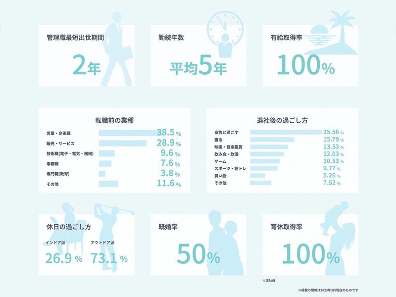 選考プロセス 応募 ↓ 書類選考 ↓ 適性検査(面接と前後する場合あり) ↓ 一次面接(各営業所) ↓ 二次面接 ↓ 内定 ↓ 必要手続き後、就業へ 売上増による営業所強化のための募集がほとんどです。 良い人が居ればすぐに採用したいため、採用まで時間はかかりません。 求人が気になったらひとまずご応募ください。