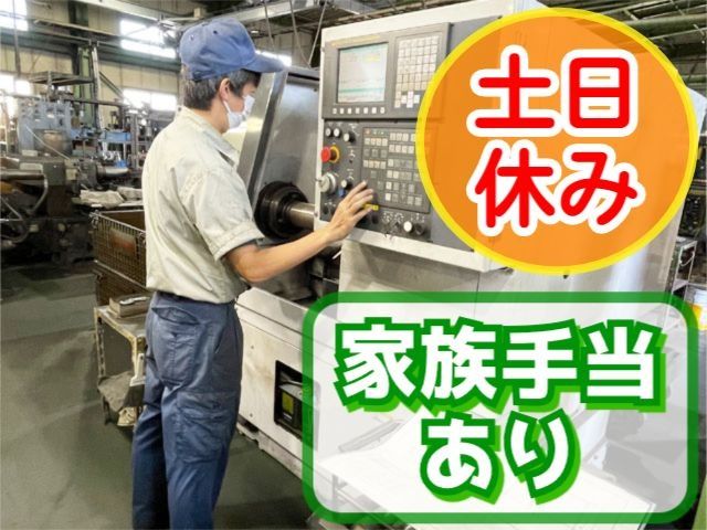 【土日休み!NC旋盤・プログラム組める方歓迎】無資格可/日勤/昇給・賞与有/車通勤可