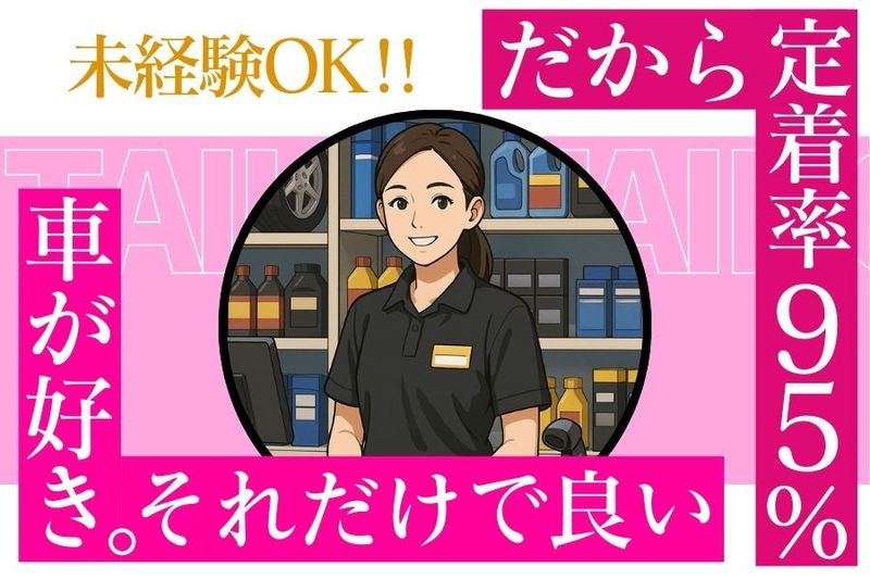 【仕事内容】 ✨「車好き」大集合! 提案から、取り付けまで全部できちゃいます!✨ 【タイホーで働くオススメポイント】 ・好きなことを仕事に! ・長く働ける環境。定着率95%! ・お客様から感想を直接いただける! ⏩️具体的な仕事内容⏩️ カー用品の販売や取り付け、買取等をお任せ。 基礎から覚えていただき、徐々に成長していきましょう! ■接客・レジ業務 カー用品はもちろん、充電器や芳香剤を買いに来る方も。 ご案内から取り付けまで一貫して行なうため、お客様に安心していただける環境です。 ※PCにてメール対応と簡単な入力作業があります。 ■PIT内作業 タイヤ交換やホイール等の取り付け補助を行ないます。 土日は1日10台ほど、少ない日は1台程度です。 ■商品美化 買い取ったタイヤ等を専用の洗剤でキレイにします。 1日に2~3セット対応することがほとんどです。 ■商品出し 商品を店頭へ陳列します。 買取品の商品化を行なったり、入荷商品を店頭に並べて、値札やポップを作成します。 【入社後の流れ】 ▼1年目:タイヤ&ホイールからスタート! タイヤ交換、ホイール取り付け・脱着の他、基礎的な商品美化、ポップ作成、車別のタイヤ・ホイールのマッチングを習得します。 ▼2年目:買取業務にステップアップ 一通りのパーツの査定・買取ができるようになれば一人前です。カー用品の価格設定等もできるようになります。 ▼3年目:店舗全体業務の把握 売り場の商品知識の習得と全体業務を覚えます。 【取り扱う商品】 タイヤ、ホイール、ナビ、オーディオ等。 中古品が中心で、”一点物”を数多く取り揃えているのが特徴です。 年式や型番も幅広く、アイテム数は3000以上。 レアものを探していたお客様にも「やっと欲しいものが見つかった!」と喜ばれます。 ============= ✅「車好き」大集合! ============= 当社のスタッフは「車好き」ばかり! お客様と車の話でついつい盛り上がり、気付けばあっという間に1日が終わることも。 好きなことを仕事にできているから、長く働き続けられるんです。 ====================== ✅お客様から直接感想がいただける! ====================== 自分が担当した車について、お客様から感想を直接いただけるのも嬉しい瞬間。 「乗り心地が良くなったよ」「あなたに全部任せてよかった」などの声をいただくと、お客様に貢献できたことをより実感できます。 さらに、店舗ごとに裁量が大きく与えられているため、担当者になればメーカーと直接交渉し自分で商品を発注することも可能です。 ================ ✅しっかりした教育環境! ================ 【1年目】 ▼OJT研修を行ないます。接客の仕方やタイヤの交換・取り付け方法などからスタート! ▼「若手会」という入社して間もないメンバー向けの社内研修が大好評! 入社3年目未満の若手層を中心に、買取業務のロープレや取引先訪問しての商品知識の習得、タイヤホイールの空気圧充填試験等が学べる勉強会を実施。 また、入社3ヶ月後から他店舗の社員と気軽に交流したり、接客や作業を先輩から教えてもらえる会を設けています。 【2年目以降】 ▼2年目は買取業務を中心に業務を覚えて頂きます! ▼3年目は店内商品知識の習得、全体的な業務にもチャレンジ! ▼最短3年で副店長への昇格も可能。その後、店長→部長へとキャリアアップの道も!
