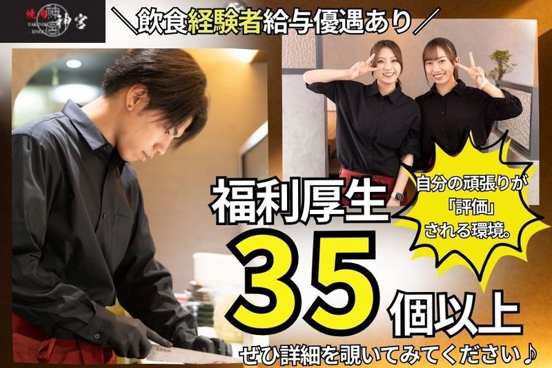 【仕事内容】 ✨接客や調理経験が少なくてもご安心ください! 少人数運営によって個々にしっかり指導が行き届く環境です。 未経験入社から6ヶ月で店長に昇格した実績あり!! 【焼肉神宮で働くおススメポイント】 ⏰毎月しっかり稼げる歩合制度あり! ⏰充実した福利厚生35個以上あり! ⏰バズリ店でスキルアップできる! ⏩️具体的な業務内容 ・調理業務や接客業務全般 ・シフト管理 ・仕入れ管理 ⏩️入社後の流れ 充実した研修制度により必要なスキルや知識を修得した上で、実際の現場で業務を行っていきます。 【1日の流れ】 15時 出社、仕込み掃除 16時半 30分休憩 17時 営業開始 23時 閉店、休憩 23時半 片付け、締め作業 =============== ✅経験がしっかり収入に直結! さらなるステップアップを実現! =============== これまで培ってきたスキルや成果は、しっかり給与に反映されます。 前職給料保証制度あり✨※規定あり 基本給に加え、売上達成に応じて歩合給を支給! 実際に【毎月コンスタントに数万円レベルの収入アップ】を実現しているスタッフもいます。 「努力や結果がきちんと評価される」制度が整っているため、経験を活かしながら、より高い収入とやりがいを手にできます⭕️ =========== ✅あなたのキャリアと 家族の暮らしを支える 充実した福利厚生! =========== 即戦力として働く方にとっても魅力的な、手厚い福利厚生がそろっています。 他社ではなかなか見られない制度も多数! 例えば―― ⭐前職給料保証制度で、転職時の不安を軽減! ⭐独立支援制度&モデル店視察費支給で、将来自分のお店を持ちたい方も応援! ⭐ご家族も嬉しい家族割・従業員割引20%オフ! ⭐子ども手当(5,000円/人)や住宅・引っ越し手当まで完備! ⭐MVP社員表彰制度で頑張りはしっかり評価! あなた自身のキャリアアップはもちろん、家族の生活まで支える“社員ファースト” の環境です⭕️ 【求人ID-STG】