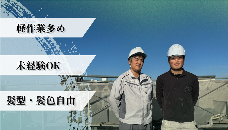 仕事内容 / 軽作業のみ!未経験者歓迎! 昇給・賞与あり! 働きやすい環境で手に職を! \ ━━━━▼▽働くポイント▽▼━━━━ ✅残業月2~5h!早上がりする日も ✅最大9日の長期休暇あり! ✅賞与や昇給あり!社宅も完備! ✅制服・工具代は会社が全額負担 ✅入社後は先輩が丁寧にフォロー! ━━━━━━━━━━━━━━━━━━ 【当社の事業内容】 屋根・屋上・ベランダなどの 防水工事をおまかせします! 未経験者は軽作業からスタート! 先輩が丁寧に指導していきます◯ 【安心ポイント】 ●重い荷物を運ぶ重労働ほぼなし ●基本は機械・道具を使った作業 ●室内作業が8割で体力負担少なめ ●昔ながらの怖い雰囲気なし 穏やかなチームで協力する職場です!! 仕事に少しずつ慣れてきたら、 徐々に本格的な施工もお任せ。 1年程度で独り立ちできるよう、 サポートします! 【面接時に必要なもの】 履歴書(用意が難しい場合は、面接時に弊社で用意します。記入内容は簡易でも構いません)