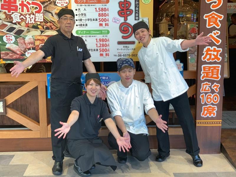 アピールポイント: 【1日の流れ(例)】 <主婦Aさん/ランチ勤務> 10:00 出勤・開店準備 11:00「いらっしゃいませ!」お迎え 12:00 ピークタイム!ご案内や配膳 14:00 退勤!夕飯の買い物へ♪ <フリーターBさん/ディナー勤務> 10:00 出勤(Wワークの後でもOK) 11:00 ランチタイム!ご案内・レジ 12:00 ピークタイム!ご案内や配膳 15:00 退勤!お疲れ様でした! ✨「串まる」は働きやすさ抜群✨ ✅スタッフ専用メニューでお得にランチ♪ ✅家族・友人もハッピー!社割 グループ店舗での飲食代が50%OFF! プライベートでも利用OKです♪ ✅シフトの融通バッチリ! 希望シフトは月2回提出! 「平日のみ」「夕方から」も大歓迎。 家事やWワークとも両立しやすい! ✅駅チカで通勤ラクラク 「大阪港」駅から徒歩5分! 海遊館の隣接施設でアクセス◎ 自転車通勤もOKです! ✅履歴書不要でカンタン応募 面接は1回のみ!人柄重視です。 リラックスしてお越しくださいね。 ✨先輩スタッフの声✨ <主婦(夫)さん> 「子どもが学校の時間帯だけ、と 希望を聞いてもらえるのが嬉しいです。 子どもの急な発熱時も 快く対応してくれて助かります。 久しぶりのパートでしたが、 仕事がシンプルで安心しました!」 <フリーターさん> 「Wワーク先との調整がしやすく、 月2回のシフト提出はありがたい! 髪色やネイルも自由(規)なのが 自分らしく働けて嬉しいポイントです。 駅チカで通いやすいのも◎」