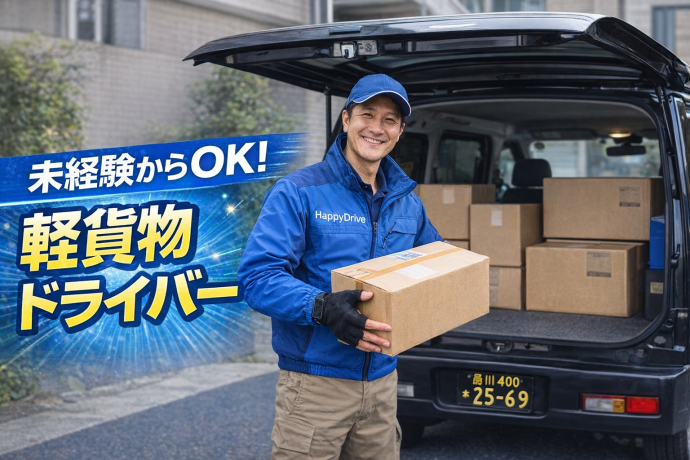 仕事内容 軽自動車(軽バン)で荷物を配送するお仕事です。 ・ネット通販の商品 ・企業配送 ・ネットスーパー配送 などの軽貨物配送が中心です。 荷物は小型のものが多く、 未経験の方でも安心して始められます。 専用アプリを使用するので道に迷うこともありません。 【住まいサポート】 上京して働きたい方もOK。 生活のスタートをサポートします。 ・敷金礼金不要 ・保証人不要 ・家具家電レンタル可能 ・1R物件あり 【サポート体制】 HappyDriveではドライバーサポート課がフォローします。 未経験でも安心して働ける環境です。 ・仕事の相談 ・生活面の相談 ・配送サポート 【こんな方におすすめ】 ✔ 今すぐ働きたい ✔ 住まいと仕事を探している ✔ 未経験から始めたい ✔ 将来独立したい ✔ しっかり稼ぎたい