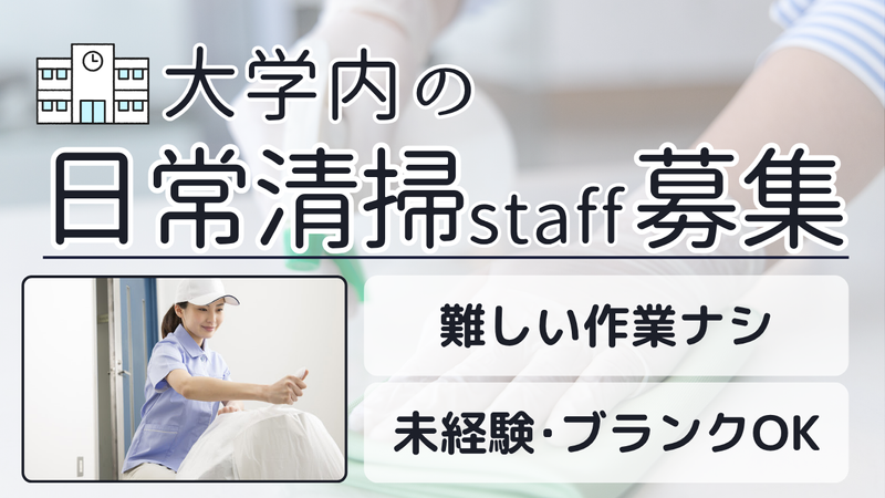 仕事内容 ========================= 野田市内に有名理系大学にて 『日常清掃』スタッフを募集いたします♪ ========================= ★具体的には  ̄V ̄ ̄ ̄ ̄ ̄ ̄ 大学キャンパス内を利用者様が 使いやすいようキレイに保つお仕事です◎ *トイレ清掃(男女) *共用部(廊下、部屋内)掃き清掃など *教室内の床や黒板清掃 など 各所ゴミ回収や、手の届く範囲の窓清掃 外周の落ち葉拾い等のカンタンな清掃です。 ※詳細は面接時に説明いたします ========================= ✨難しい作業はありません!!✨ ========================= お仕事内容は1から丁寧にお教えします! 「綺麗好き」「家での掃除が得意」 という方にオススメのお仕事です♪ - 《スポンサーとしても貢献しています》 ビルメンテナンス・清掃・警備事業で 地元に貢献する常陽メンテナンス株式会社は、 同じく水戸で活躍するプロバスケットチーム 『茨城ロボッツ』を応援しています!