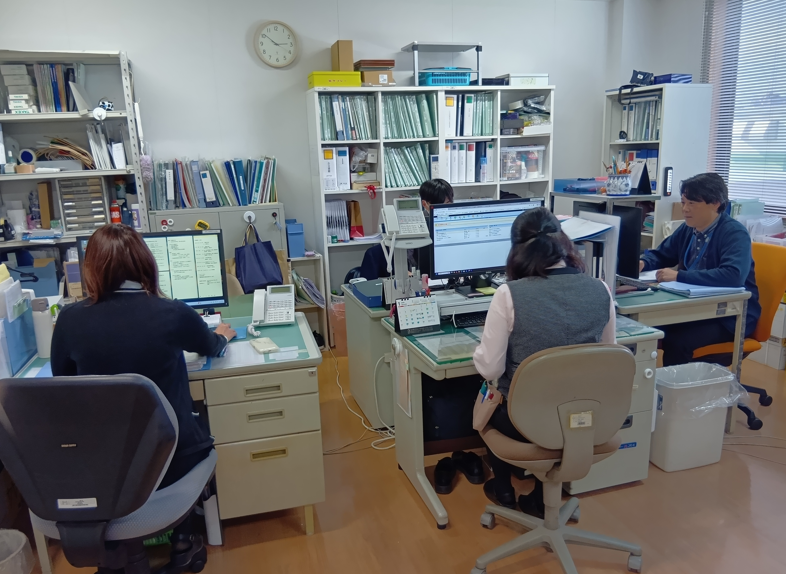 職場環境 子育て中のママさん社員が多いので、 「今日のお夕飯どうする?」なんて 家庭的な会話が飛び交うことも。 仕事帰りにそのままスーパーへ寄って お迎えに行くのもスムーズです。 喫煙所:なし(敷地内全て禁煙)