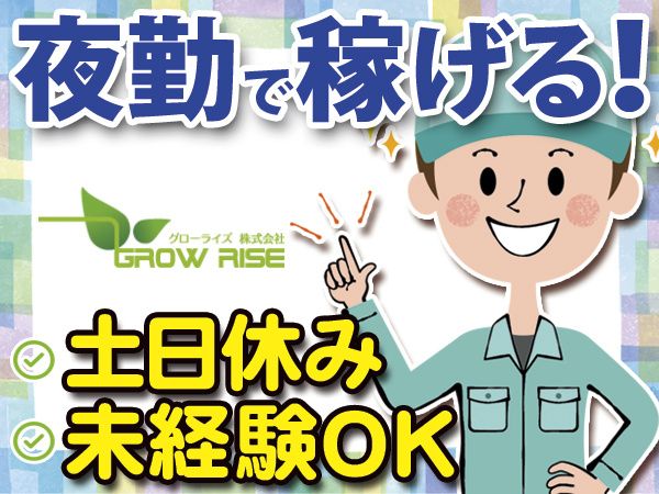 仕事内容 プラスチック射出成形オペレーターのお仕事です。 時給1,400円~ \夜勤です/ 20:00~5:00 【主なお仕事】 工場でのプラスチック射出成形オペレーター業務です。 機械へのチップの投入・成形後の製品取り出しなど医療用プラスチック部品の製造を行います。 ある程度作業を覚えるまでは、日勤での勤務となります。 経験者はもちろん未経験の方も指導を通して、徐々に学んでいただきます。 クリーンルームだから働きやすい環境です。 勤務時間は、 20:00~5:00 稼ぎやすい職場・安定して残業のある職場です。 土日休み・週休2日制なのでプライベートの 予定なども立てやすく充実できます。 一から丁寧に指導するので 未経験の方でご安心ください。 〇グローライズについて 派遣のお仕事やアルバイトを探すなら 松本市のグローライズ株式会社へ。 中信地区(松本市、塩尻市、安曇野市)の 求人情報多数ございます。 初めての方でも安心です。 あなたの就職をトータルサポート致します。 〇応募について 勤務地は安曇野市明科になります。 安曇野市の方はもちろん、松本市 生坂村、池田町、松川村の方も通勤圏内です。 ご不明点などございましたら お気軽にお電話・お問合せください。 (0263-31-3152/採用担当) (MAIL:mail@grow-rise.co.jp) 他にも多数お仕事あります。 https://entori.jp/grow-rise ご応募お待ちしております。