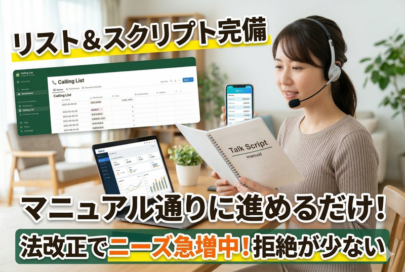 1アポ2万円・2時間に1件獲得可・完全在宅でスクリプト等完備