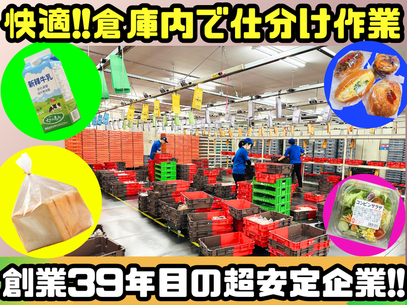 仕事内容 大手有名メーカーの パン、和菓子、惣菜などの 食品の仕分け作業をお任せします!! 扱う商品は軽い食品が中心なので 体への負担も少なく長く勤務出来ます♪ また、倉庫内は温度管理が徹底されており、 夏は涼しく、冬は暖かい 働きやすい環境です。 【具体的には…】 ・パン/和菓子/惣菜などを 店舗ごとに仕分け。 ・食品をトレー(プラスチックの箱)に 入れていく作業。 【"簡単"仕分け作業の流れ】 ①商品を機械に通す。 ②光っているボタンに補充する 個数が自動表示されます。 ③表示された数だけ商品を箱に入れる ④入れ終わったらボタンを押すだけ!! 【POINT】 ★商品や個数を覚える必要ナシ!! ★機械の指示通りに進めるシンプル作業!! ★業界未経験の方でも安心の単純作業!! ★早い方なら2週間で仕事に慣れます!!