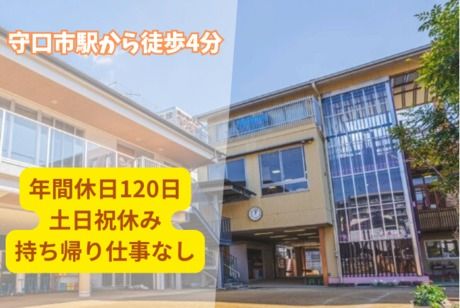 土日祝休み、賞与4か月分、年間休日120日、守口市駅から徒歩4分、駅近で働きやすい