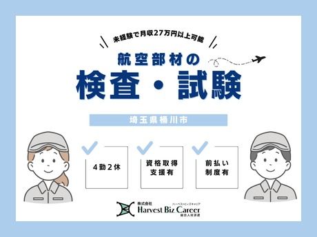 仕事内容 具体的には 航空機エンジンなどに使用される金属部品の検査を担当します。 内部の欠陥や表面の傷などを確認し、安全性を守る大事な工程です。 ・専用器具・機器を使用した検査業務 内部の欠陥を確認する非破壊検査や、外観チェックなどを行います。 マニュアルに沿って判定するので、精度が求められるお仕事です。 ・寸法測定 ノギス・マイクロメーターなどを使い、規定寸法とのズレをチェック。 ・材料検査 組成や強度に問題がないか、基準に沿って確認します。 ・検査記録の入力・報告書作成(フォーマットあり) 測定値や検査結果をシステムや用紙へ記録します。 未経験でも、基礎から丁寧に教えてもらえる環境なので安心してスタートできます。