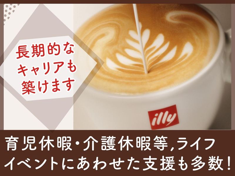 【保険制度】 雇用保険、労災保険、健康保険、厚生年金 待遇・福利厚生 【福利厚生】 <サントリーグループならではの 充実した福利厚生あり!> ■昇給 年1回 ■賞与 年2回(6月・12月) ■昇任試験(店舗年2回、本部年1回) ■社会保険完備 ■通勤交通費支給 ■残業代(全額支給) ■こども手当 (子1名:1万5000円/月 2名:3万5000円/月 3名:6万円/月) ■健康診断 ■慶弔見舞金 ■福利厚生サービス 「ベネフィットステーション」利用 ■レクリエーション補助制度 (プライベートでの旅行や食事などの 費用を一部負担※年間上限2万円) ■健康診断(年齢により生活習慣病予防健診、人間ドック) ■メンタルヘルス相談窓⼝設置 ■海外研修(選抜制) ■転勤を伴う場合の社宅手配 ■制服貸与 ■資格取得支援 (コーヒーマイスター・ソムリエ勉強会) ■サントリー共済会加入 (ホームヘルパー・ベビーシッター利用補助等) ■勤務地内は禁煙または分煙 (店舗による) ■社員割引有/社内割引有