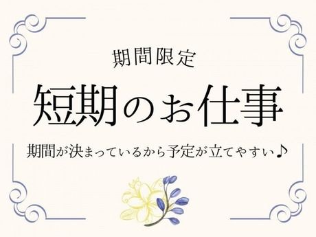 資格 ・接客販売経験がある方 ▼1ヶ月の期間限定のため、 日雇い派遣原則禁止の例外に当てはまる方 1.60歳以上の方 2.生業収入が年収500万円以上で副業として希望する 3.主たる生計者ではない方で世帯収入が年収500万円以上の方 ■異業界からの転職も大歓迎! 接客や販売業界からオフィスワークに転職した 先輩スタッフもたくさん在籍しています! 「PCはそんなに得意じゃないけど…」 「事務系は初めてだから出来るかな…」 という不安も、丁寧な研修があるので大丈夫! あなたの現在のスキルに合わせてお教えします♪