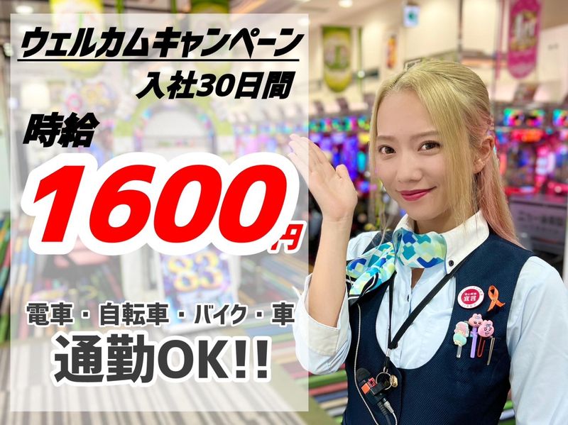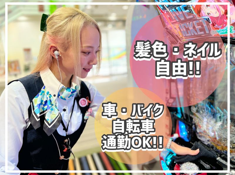 仕事内容 <✅お仕事内容> ■ホールスタッフ ・ホール巡回 ・遊技方法の説明 ・玉やメダル詰まりの解消といった、簡単なトラブル対応 ・最新パチンコ台のご案内 ・ドル箱の交換運搬業務。 ・空いている遊技台の清掃や消毒などをお任せします! ■カウンタースタッフ ・カウンターでの景品交換 ・景品の補充や陳列 ・在庫管理 など ⭐ホール・カウンターどちらも覚えて頂き、最終的には兼務して頂きます ⭐6ヶ月~OK! <✅各台計数システム導入!> そのため、ドル箱の運搬業務は一切ナシ! 力仕事はほとんどないのでご安心下さい。 20~40代女性も多数活躍中です! <✅8割以上の方がパチンコ未経験で入社> そんな先輩も今では立派に活躍中! 勤務初日は専属トレーナーが、2日目以降も先輩スタッフやトレーナーがマンツーマン体制でお教えするのでご安心下さいね。 11日目から1人デビュー! と言っても、困った時はスタッフ同士でやり取りできる「インカム」で呼んで頂ければ先輩がスグに駆け付けます! <✅ネイルや髪色は…?> ネイル: サービスに支障が出なければ、デザインや長さは自由! 髪色: 元気で明るい笑顔で対応して頂ければ髪色も自由! <✅学業と両立したい方は…> 18時~、18時30分~、19時~… といったシフトも可能! 「サークルがあって…」 「授業があるので夕方からしか入れない」そんな学生さんにもピッタリ! <✅1日の流れ> ■早番の日 09:00~ /出社後ミーティング&開店準備 10:00~ /お店OPEN 昼食 /昼食は交代でとります 16:00~ /遅番の方と引き継いで交代 16:30 /終業ミーティング&終業 ■遅番の日 16:00~ /早番の方から引き継ぎを行って業務開始 食事 /夕食は交代でとります 22:50 /閉店し、お客様をお見送り 23:00~ /閉店作業 23:30 /ミーティング後&終業