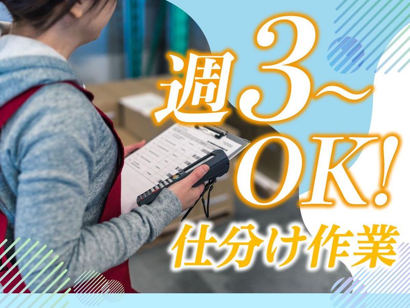 仕事内容 ✨景品・商品の梱包・仕分け・発送のお仕事✨ ✨週3日~勤務OK!✨ ✨三郷周辺・地元の方が多く在籍中!✨ ⏩景品・商品を梱包・仕分け・ピッキング などの出庫作業を行います。 難しい仕事ではありませんので 未経験の方も大歓迎です! 綺麗な職場環境でコツコツ 行う作業空調が効いた 職場なので勤務し易さ◎ ⏩仕分け・梱包作業!時給1141円以上。 倉庫未経験の方も大歓迎! お気軽にご応募下さい。 ✨♦°˖⭐°˖✨♦°˖⭐°˖✧✨♦°˖⭐°˖✧ <<アピールポイント>> お手伝いいただける複数名 のスタッフさんを募集しています。 作業は簡単で楽しく、 扱っている商品は子供たちに 行き渡る商品なので やりがいのあるお仕事です。 月から金の間で週3日勤務 稼働している工場なので、 私生活との両立にもピッタリ! メリハリをつけて 働きたい方にオススメです! スタッフは近隣にお住まい の方が多いため、 自転車通勤をしている方が多いです◎ 昇給した際には固定給の パート勤務もできます。 ✨♦°˖⭐°˖✨♦°˖⭐°˖✧✨♦°˖⭐°˖✧ <HP> http://www.sys-inc.jp/