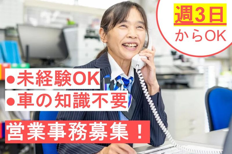 【アピールポイント】 自動車販売店の営業事務スタッフ募集 ■未経験OK ■週3からOK