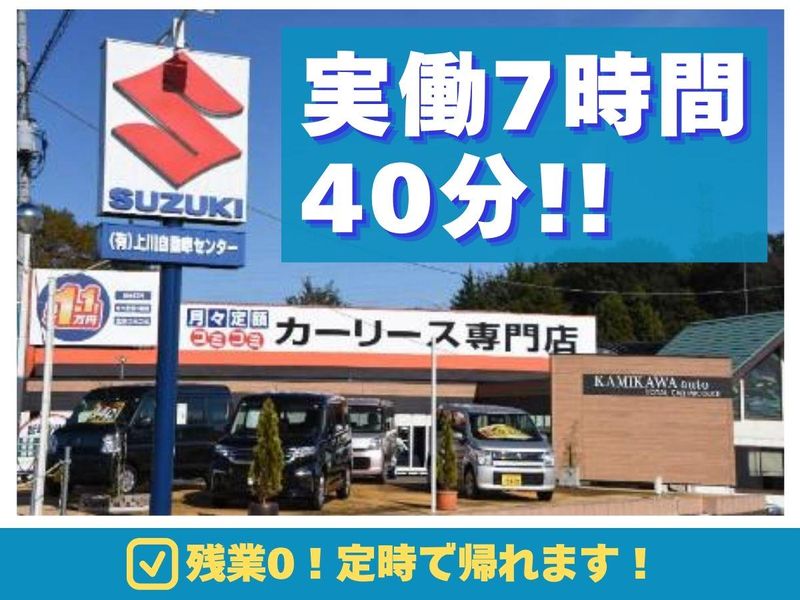 仕事内容 \\ 待遇充実✨求人のポイント◎// ⛳土日祝休みでプライベート充実! ⛳残業ゼロで定時退社OK! ⛳ノルマがないから負担が少ない◎ ⛳資格がなくても経験さえあればOK! .˚⊹⁺‧┈┈┈┈┈┈┈┈┈┈┈‧⁺ ⊹˚. ⭐家族との時間を大切にできる!⭐  ̄ ̄ ̄ ̄ ̄ ̄ ̄ ̄ ̄ ̄ ̄ ̄ ̄ ̄ ̄ ̄ ̄ 「まずは家庭の笑顔を作る所から」 ──そんな想いから、土曜は隔週、 日曜と祝日は毎週しっかりお休み! また、残業は基本ゼロなので ほとんど毎日定時で帰れます♪ 家族との時間やプライベートを 優先できる環境です◎ 実際に、土日休みに魅力を感じて 転職してきたスタッフもいます! 有給休暇も取得しやすく、 安心して働けますよ♪ .˚⊹⁺‧┈┈┈┈┈┈┈┈┈┈┈‧⁺ ⊹˚. ⏩仕事内容はこちら  ̄ ̄ ̄ ̄ ̄ ̄ ̄ ̄ ̄ □ 車検整備 □ 一般整備 □ 法定点検 □ 電装部品の交換 □ ナビ・バックカメラの取付 □ コーティング施工 など 民間車検場のため車検整備を メインでお任せしますが、 一般整備の業務もお願いします! ⛏ミスのない丁寧な作業を 大切にしているからこそ、 一人ひとりに無理な負担はかけません。 あなたのスキルに応じて、 余裕を持った作業量をお任せします‼ 【取り扱い車両】 ✅普通車・軽自動車 ✅普通・軽貨物・中型貨物 ✅マイクロバス など ※管理の大型貨物は2台程度 ┏━━━━━━━━━━━┓ ✨丁寧なサポートあり!✨ ┗━━━━━━━━━━━┛ 基本の整備業務をはじめ、 状況に合わせて様々な 業務をお任せしていきます。 その都度、先輩が丁寧に 指導しますので安心して 仕事に慣れていってくださいね◎ ┏━━━━━━━━━┓ ✨ノルマ一切なし!✨ ┗━━━━━━━━━┛ ■1日の業務量は… └車検4台 └定期点検1台をチームで整備 当社ではノルマを設定していません。 ノルマに追われることがないため、 目の前の業務に集中できる環境です! ┏━━━━━━━┓ ✨熱中症対策!✨ ┗━━━━━━━┛ ■スポットクーラーを支給! └ピット内に1人1台スポットクーラー がございますので、無理なく働ける! ■休憩室に自由に飲める飲み物あり! └ペットボトルのお水やお茶が 自由に飲み放題! ◆◇・◇◆・◆◇・◇◆・◆◇・◆◇・◇◆・◆◇ 【上川自動車センターについて】 地域に根ざし、長年にわたって 信頼を築いてきた整備工場です。 全国800店舗以上を展開する フランチャイズに加盟し、 安定した経営基盤を確立しています。 車検・整備・中古車販売に加え、 近年は新車・中古車の リース事業もスタート。 多彩なサービスでお客様の あらゆるカーライフに対応し、 より魅力ある会社づくりを進めています。 あなたも整備士として、 当社の成長を一緒に支えていきませんか? ◆◇・◇◆・◆◇・◇◆・◆◇・◆◇・◇◆・◆◇