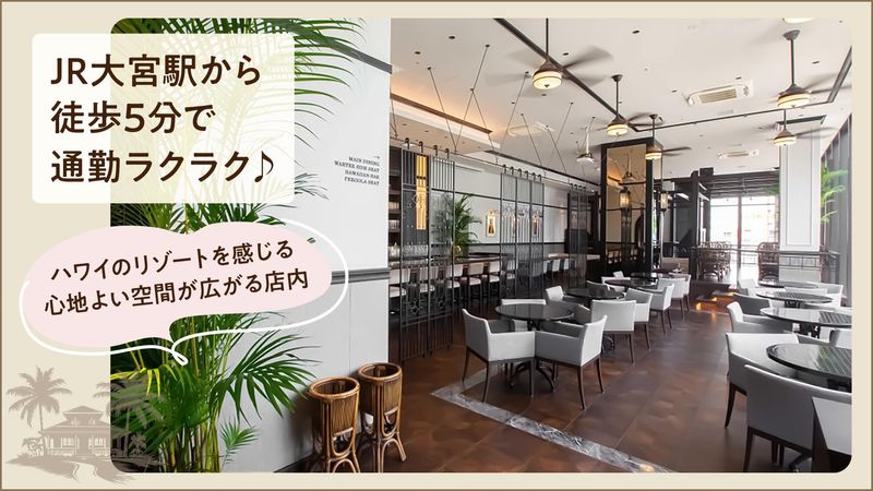 仕事内容 ✨あなたを輝かせる!働く魅力ポイント✨ ✅大宮駅で毎日がリゾート気分♪ L遊びもバイトもどっちも充実できる 最高の立地! ✅まかないが絶品! Lスタッフ限定★ プロの味を気軽に食べられる贅沢特典! ✅SNS映えなおしゃれ空間★ L非日常空間で自然とテンションUP♪ ✅シフト自由で予定も安心! L家事・学校・遊び・推し活と両立しやすい働き方◎ - ✨料理好き集合!調理スタッフ大募集✨ お客様の「最高の時間」をつくるお仕事! <お仕事内容> ✅簡単な調理補助(マニュアル通りでOK) ✅食材のカットや準備 ✅きれいに盛り付けるだけ♪ ✅食洗機を使った洗い物・片付け - ✨バイトデビューも全力応援✨ 「アルバイト未経験」 「飲食店での勤務は初めて…」 そんな方も大歓迎! 先輩スタッフがイチから 丁寧にレクチャーします! 「やってみたい!」の 気持ちさえあればOK! 新しい仲間と一緒に 楽しくスタートしましょう♪ ✨もちろんパートデビューも応援✨ 家事や子育てにも理解のある職場です! 先輩スタッフにもブランクから 仕事復帰した方もいるので、 「久しぶりのお仕事」 「家庭と上手く両立できるか不安…」 という方も安心してくださいね! - ✨ジンジャーズビーチのこだわり✨ ハワイ・カウアイ島の リゾートを再現した空間! 木の温もりあふれる 落ち着いたインテリアで、 都会の喧騒を忘れる 癒しのひとときを提供。 ハワイ×西洋×和の 技法を融合した料理で、 家族や友人、大切な人と過ごす 特別な時間を演出します! -