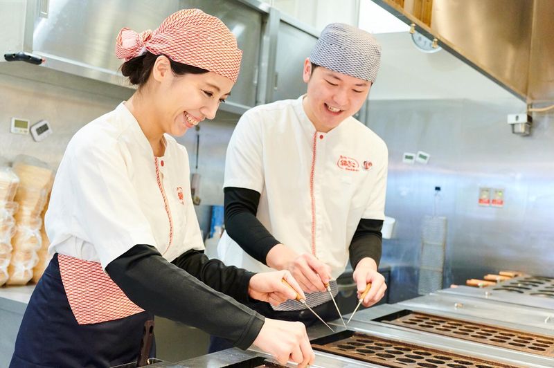 仕事内容 【楽しいと大人気!たこ焼き製造】 「初めてのバイト」で不安という方も活躍中! アルバイト未経験も丁寧に教えますので ブランクがある方も安心してください! 短時間から勤務可能で、趣味や家事との 両立もしやすい環境です! 通勤も、駅チカなのでラクラク! 雨の日も安心!自転車通勤も可能なので、 近場に住んでいる方も通いやすいですよ! 他にも、制服貸与や昇給などメリットたくさん! 【仕事内容】 ・食材準備・・・袋を開けタコ、天かす、粉等材料を容器へ。 水と粉をドリルでかき混ぜる。 ・鉄板に流して全自動の機械がたこ焼きをコロコロ! チェックして盛り付け! ・メニューは約6種類!覚えやすく簡単! まずは簡単な調理補助からスタートします!