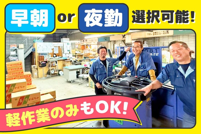 仕事内容 <京都中央市場スタッフ募集> <23時〜翌8時のフルタイム勤務!> <深夜23時〜5時は時給1,563円で効率◎> <アルバイト⇒正社員登用実績あり⭐> <社会保険完備で安定して働けます> ✅仕事内容  ̄ ̄ ̄ ̄ ̄ ̄ 野菜の配達や荷物の仕分けなどをお任せ 慣れるまでは 先輩が横乗りで丁寧に教えるので、 市場での仕事が初めての方も 安心してスタートできる環境です。 仕分け(モートラ)8:2 配送です♪ ◆中央卸売市場内にて モートラで場内への配達 ◆2tトラックにて 市内のスーパーなど固定先への配達 適度に体を動かしながら、 一晩でしっかり稼げるお仕事です! *大型スーパーや大手漬物店など、 1949年創業の安定した会社です。 *未経験大歓迎! 「深夜・早朝に集中して稼ぎたい」 という方を応援します。 ✅アピールポイント  ̄ ̄ ̄ ̄ ̄ ̄ ̄ ̄ ̄ ◆しっかり稼げる月収25万円以上も可能! ◆社会保険完備でフルタイムの安定感抜群 ◆未経験歓迎!20代〜40代男性が中心に活躍中 ◆正社員登用制度あり (アルバイトからステップアップOK) ▶ 高時給×効率重視! ━━━━━━━━━━━━━━━━━ ▶ 髪色・髪型・服装自由♪ ━━━━━━━━━━━━━━━━━ ▶ 体動かすから一瞬で時間が過ぎる! ━━━━━━━━━━━━━━━━━ ▶ フルタイムの方は大歓迎 ━━━━━━━━━━━━━━━━━ ▶ 駐車場あり、ガソリン代支給(規定) ━━━━━━━━━━━━━━━━━ ▶ ドリンク常備!自由に飲んでOK ━━━━━━━━━━━━━━━━━ ▶ Wワーク・副業との調整も可能 ━━━━━━━━━━━━━━━━━ ⭐ガッツリ稼ぎたいアナタを大歓迎! 「今の収入を増やしたい」 「夜型の生活を活かしたい」 そんな方は、 まずはアルバイトから始めてみませんか? 職場に慣れて 「長く続けられそう」と思えたら、 正社員への登用も積極的におこなっています。